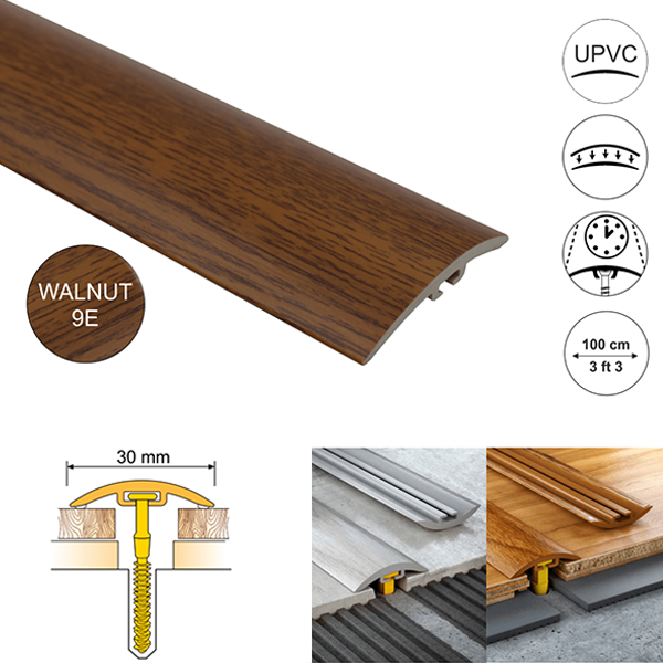 30mm Wide PVC door floor trim for wooden, laminate, carpet, vinyl or tiled floors